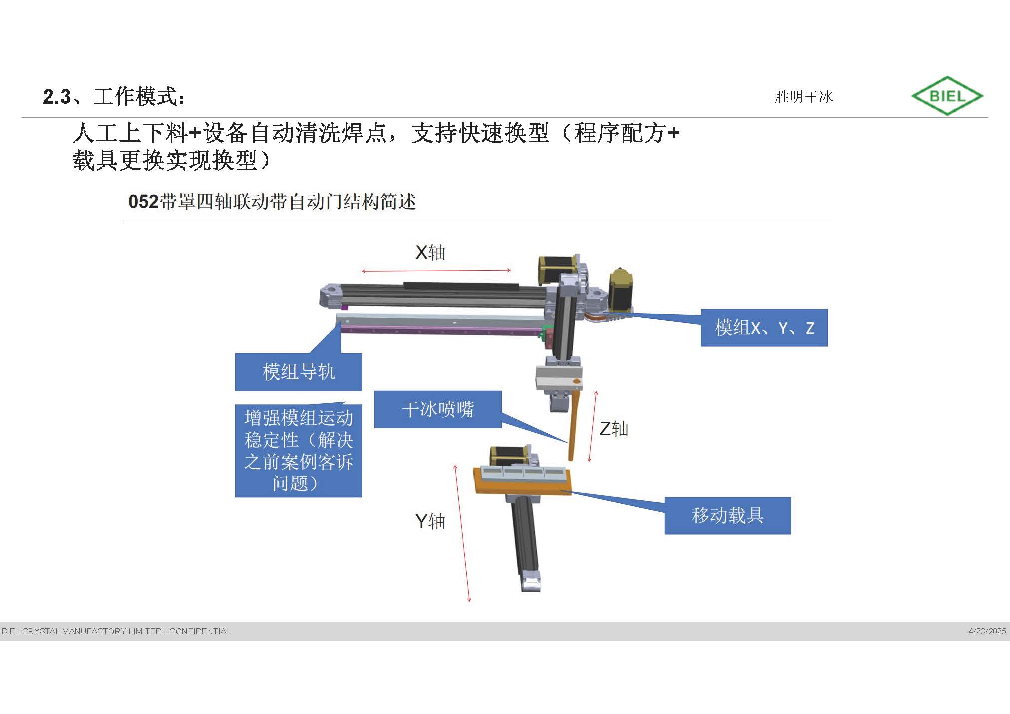 五軸聯動自動門干冰清洗設備052E,省去啟動及關門時間,提高清洗節拍